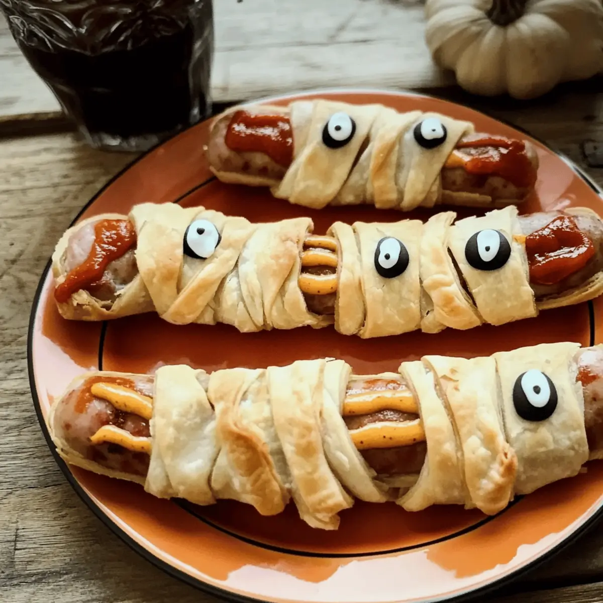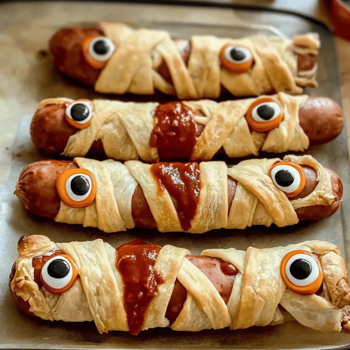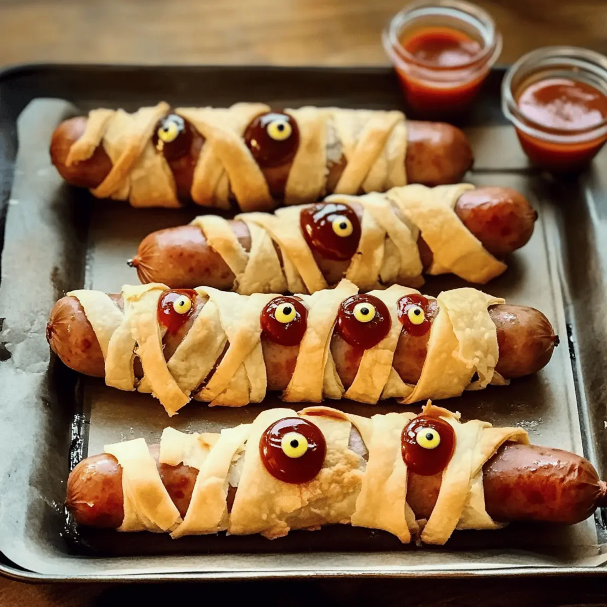- BBQ-Twist: Ersetze den Senf durch BBQ-Sauce für einen süß-rauchigen Geschmack. Das gibt den Mumien ein ganz neues, würziges Flair!