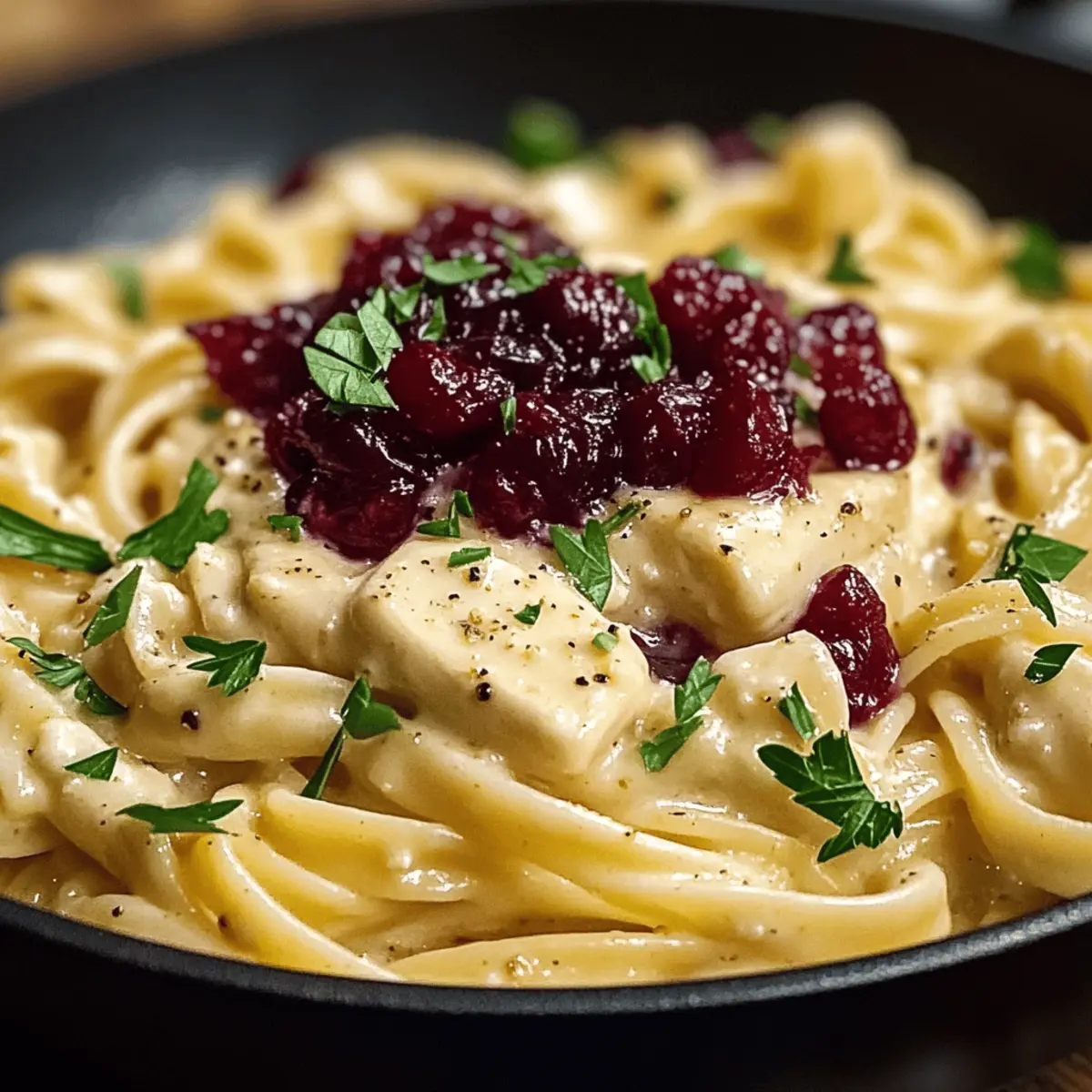 Einfachheit pur: Die Zubereitung von Brie Pasta mit Preiselbeeren Kompott ist schnell und unkompliziert, perfekt für einen Wochentag oder unerwartete Gäste.
