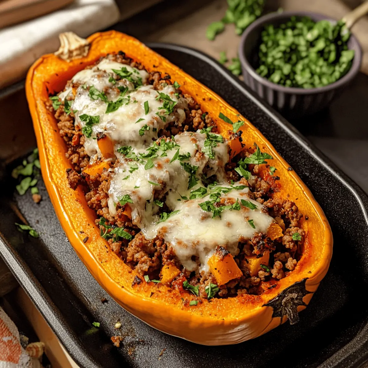 Butternut-Kürbis gefüllt mit Hackfleisch für den Herbst