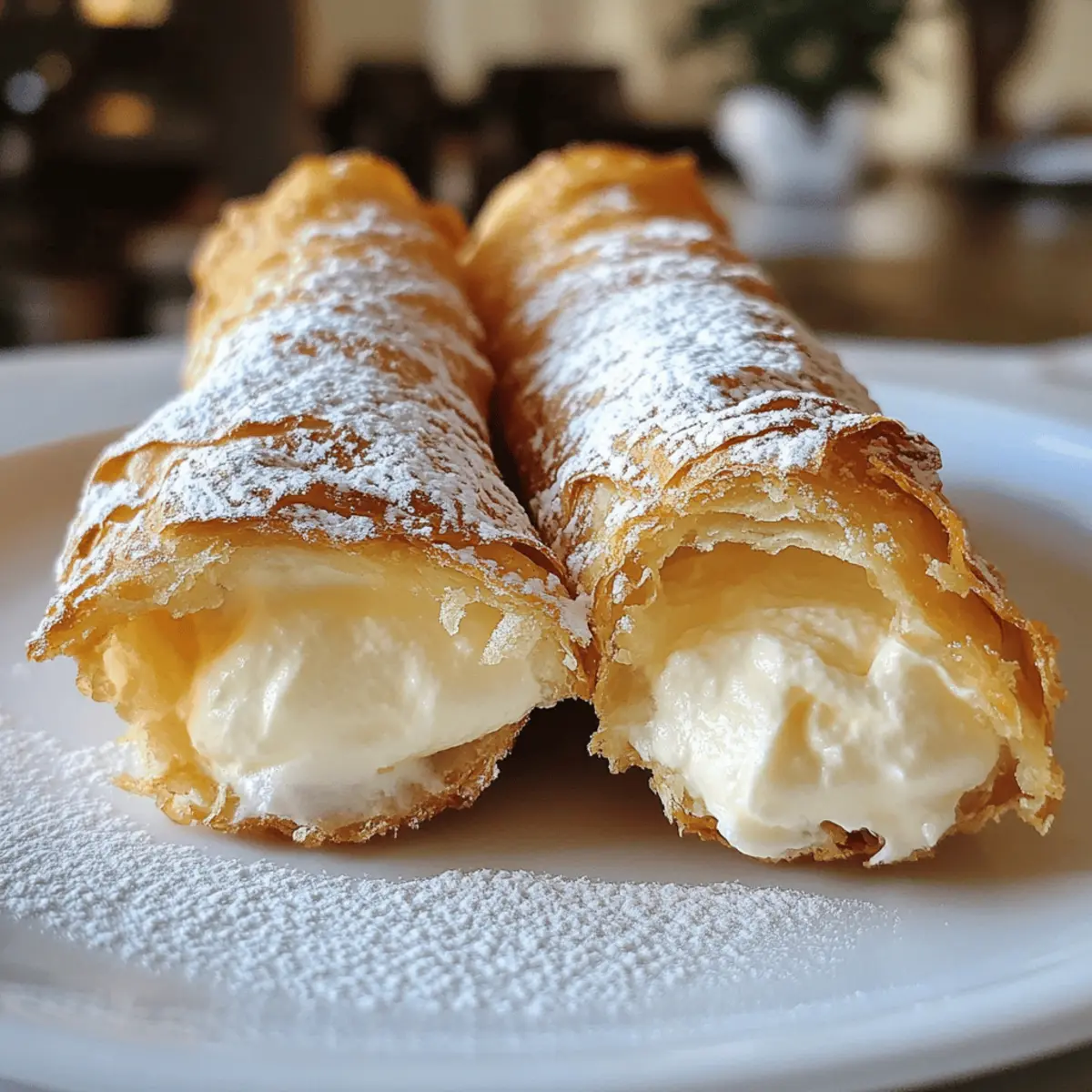 Sobald die Cannoncini vollständig abgekühlt sind, mit der italienischen Creme füllen. Verwende dafür einen Spritzbeutel oder einen kleinen Löffel, um die Creme vorsichtig in die Teigrollen zu geben. Achte darauf, sie erst kurz vor dem Servieren zu füllen, damit sie knusprig bleiben.