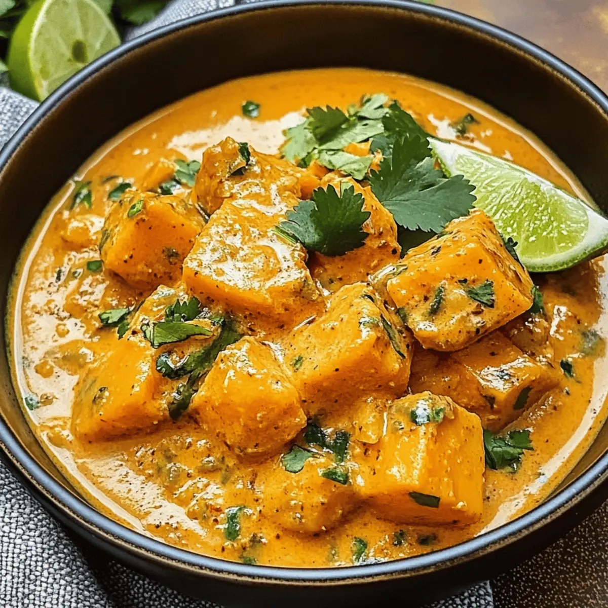 Aromatische Drehs: Füge den Limettensaft kurz vor dem Servieren hinzu, um eine frische Note zu erzielen und das einfache thailändische Kürbis-Curry abzurunden.