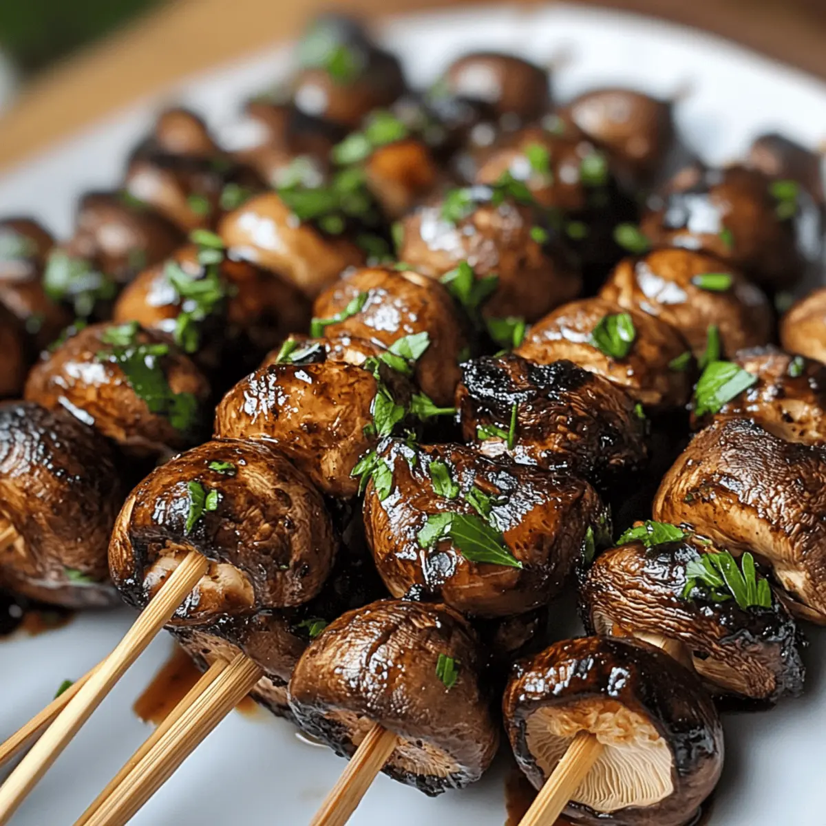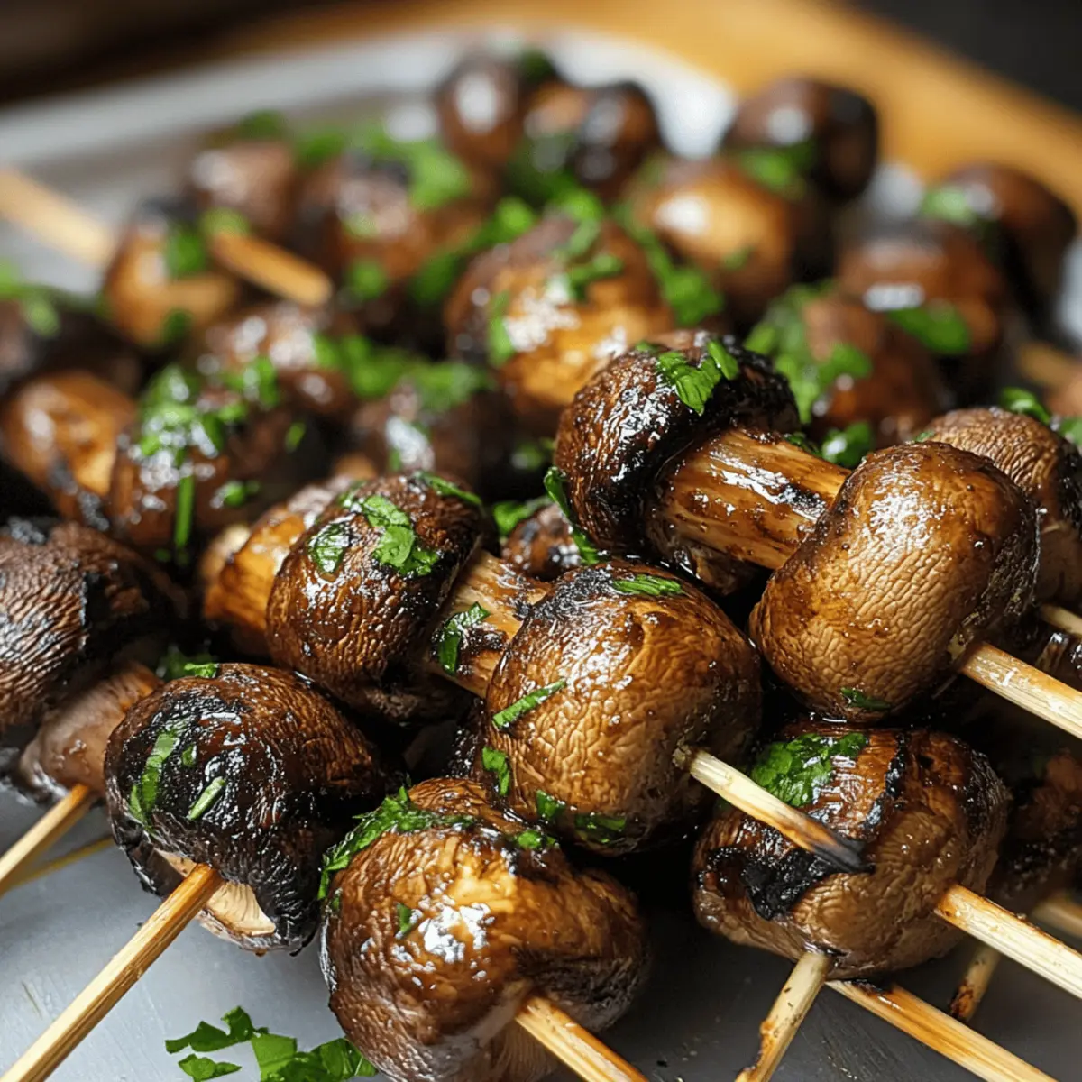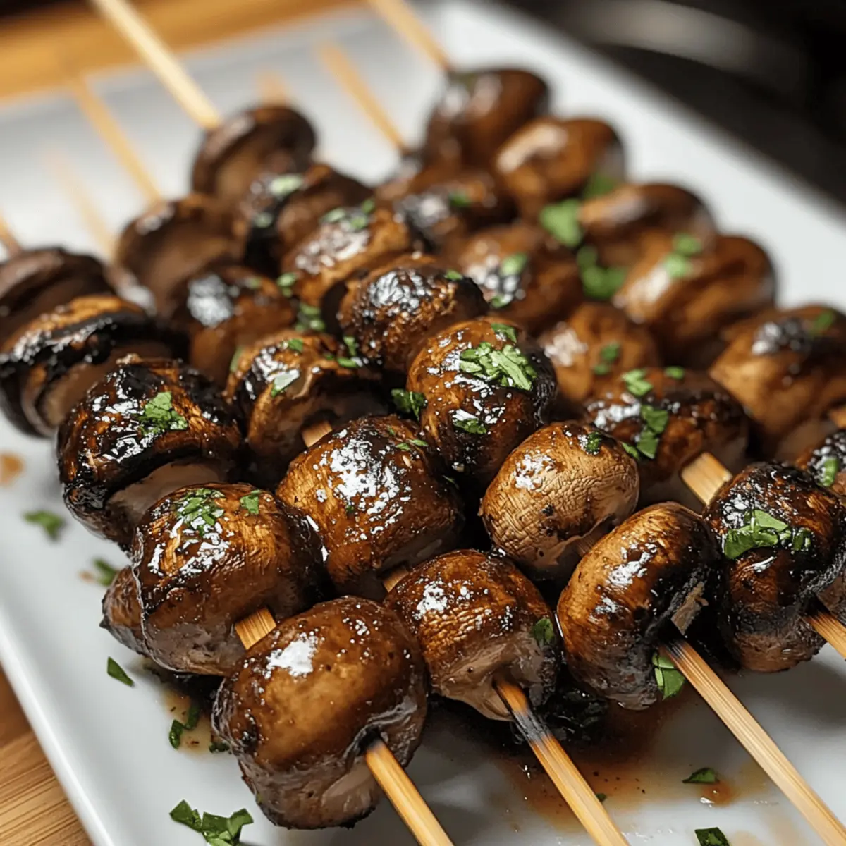 Gesunde Wahl: Mit nur etwa 150 Kalorien pro Portion sind diese gegrillten marinierten Pilzspieße eine nährstoffreiche und leichte Snackoption, ideal für eine ausgewogene Ernährung.