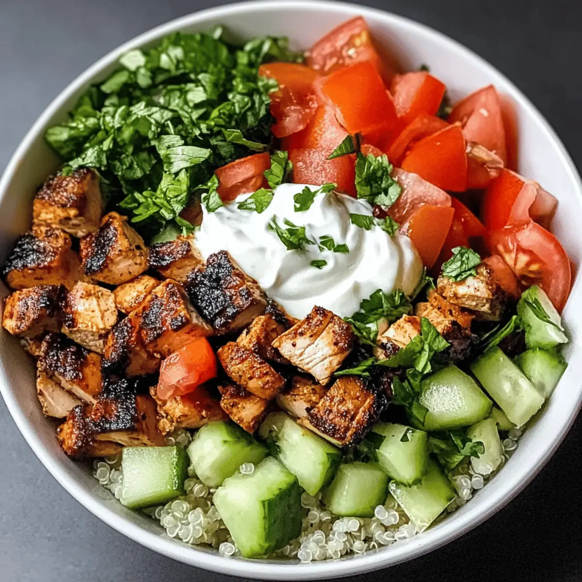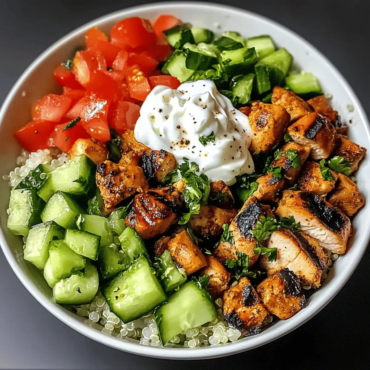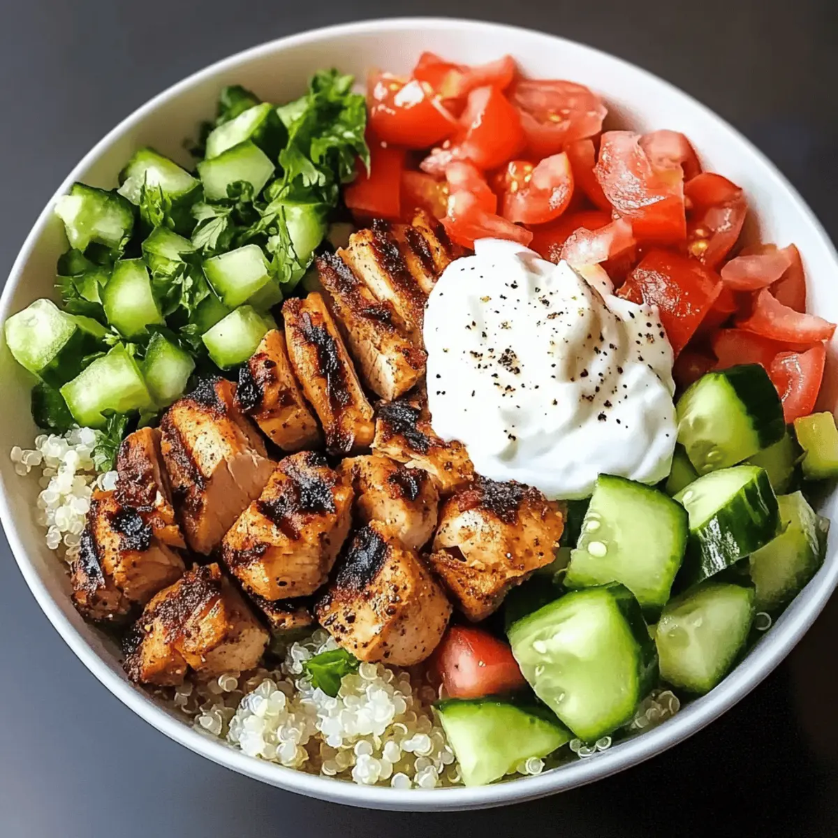 Bereite die Gesunde Kebab-Bowl im Voraus vor, um wertvolle Zeit während der hektischen Wochentage zu sparen! Du kannst das Kebab-Fleisch bis 24 Stunden im Voraus marinieren, wodurch die Aromen intensiver werden und es zarter bleibt. Während das Fleisch mariniert, schneide die Tomaten und Gurken, die du ebenfalls bis zu 3 Tage im Kühlschrank aufbewahren kannst. Achte darauf, sie in einem luftdichten Behälter zu lagern, um die Frische zu erhalten. Am Tag des Servierens musst du lediglich das Fleisch grillen (etwa 8-10 Minuten) und die Bowls zusammenstellen, indem du Reis oder Quinoa als Basis verwendest und alles mit der Joghurt-Sauce garnierst. So hast du im Handumdrehen ein gesundes und schmackhaftes Essen!