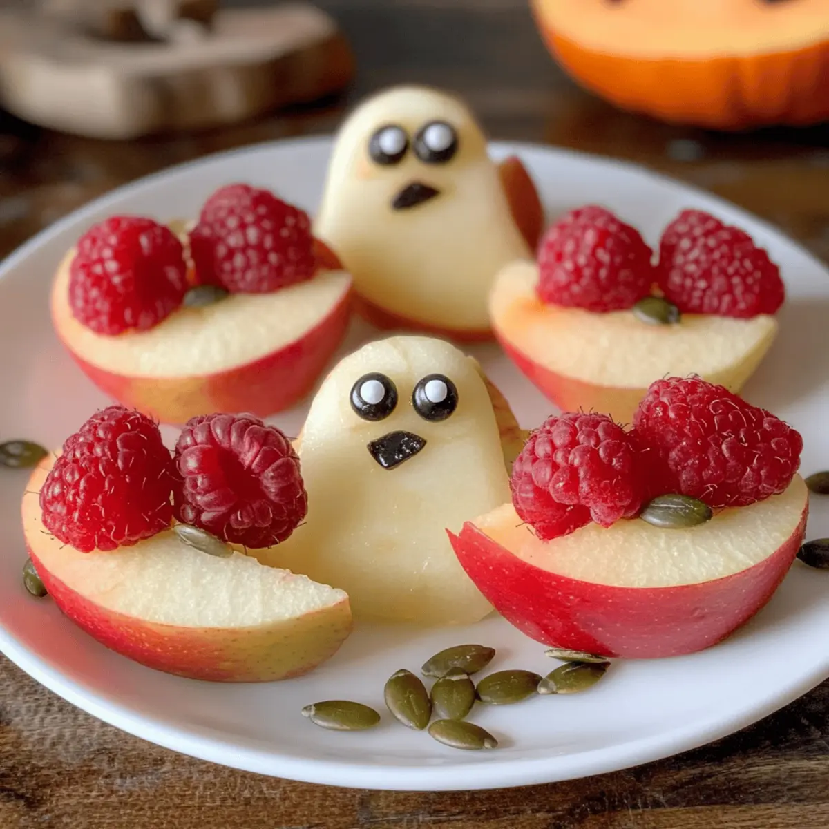 - Die Augen bestreuen: Kürbiskerne auf die Himbeeren als Augen hinzufügen.