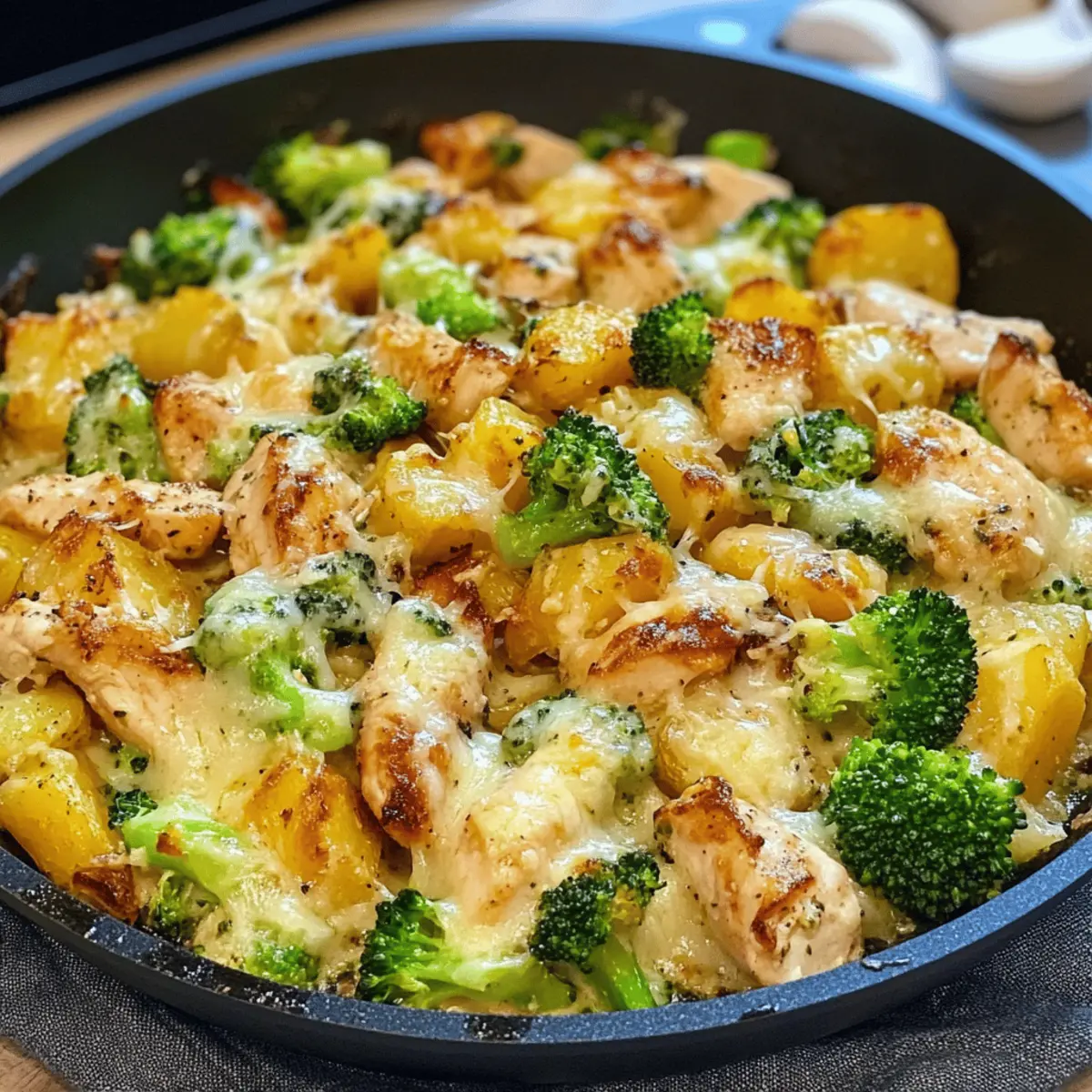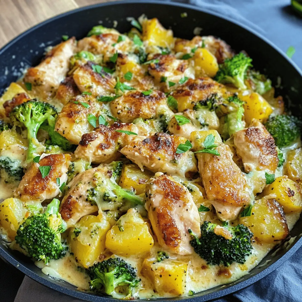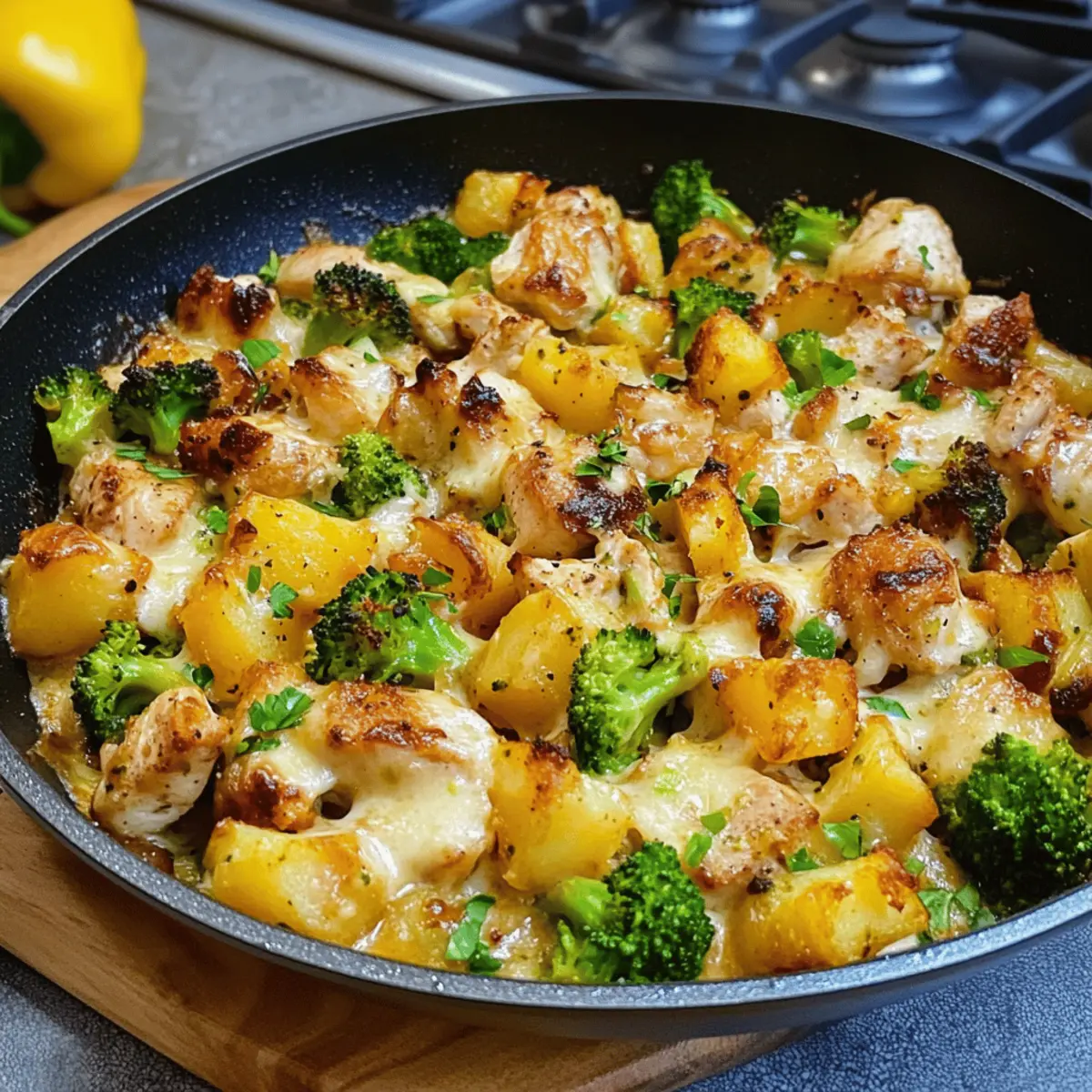 • Diese einfache aber köstliche Zusammenstellung wird dir helfen, deine eigene Kartoffel-Hähnchen-Pfanne mit Brokkoli zuzubereiten!