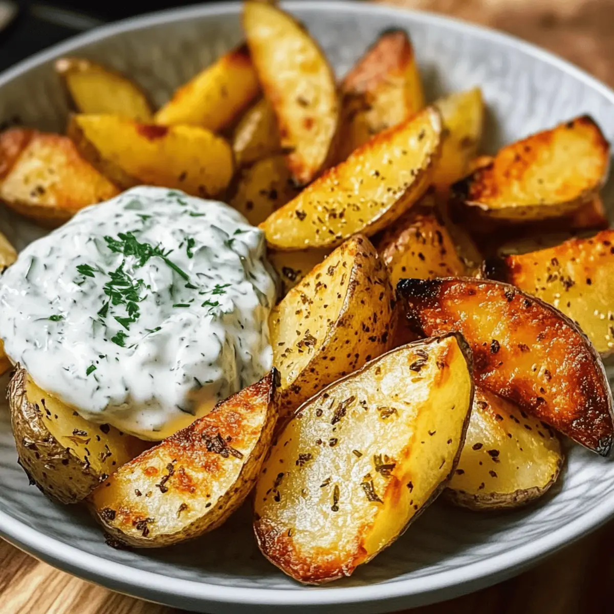 Kartoffelspalten mit Gurkendip – So einfach und lecker