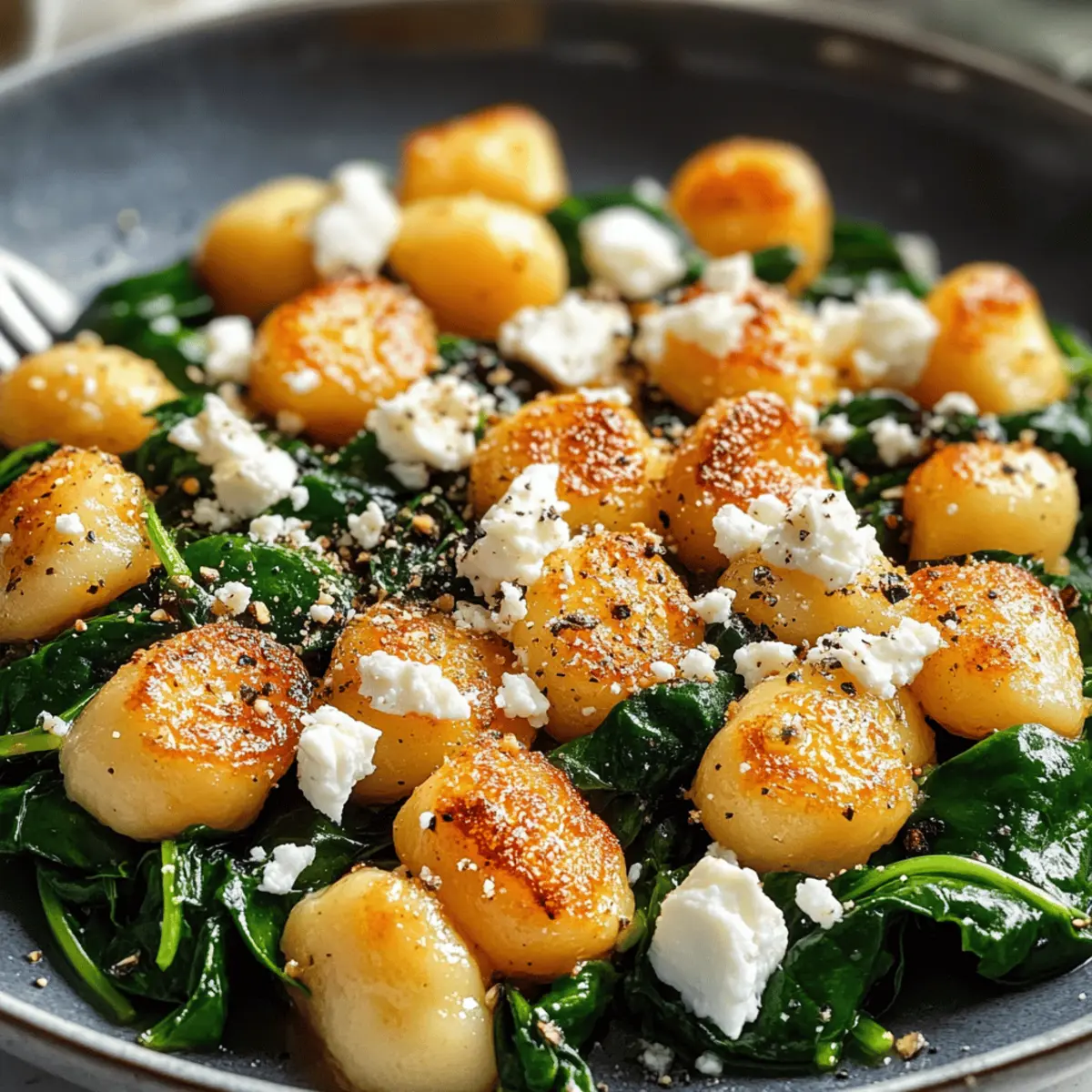 Entdecke jetzt, wie einfach es ist, diese knusprigen Gnocchi mit Spinat und Feta zuzubereiten und verwöhne deine Lieben!