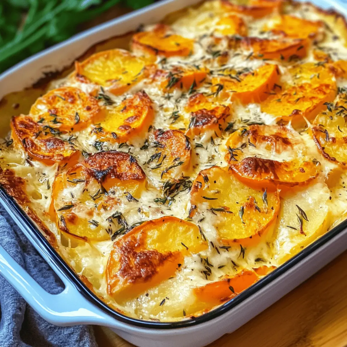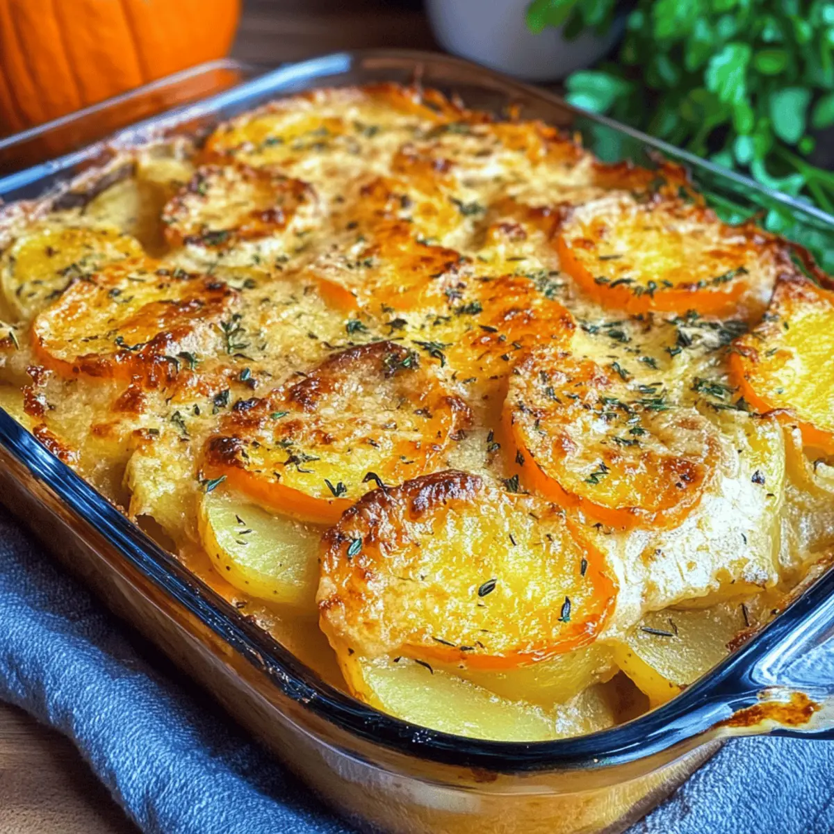 Entdecke die Magie des Kürbis Kartoffel Gratin und bringe ein Stück Herbst auf deinen Tisch!