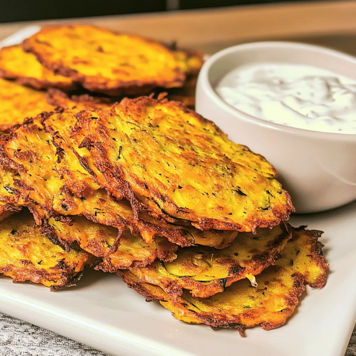 Leckere Kürbis Zucchini Puffer, ideal für gesunden Genuss und abwechslungsreiche Beilagen.
