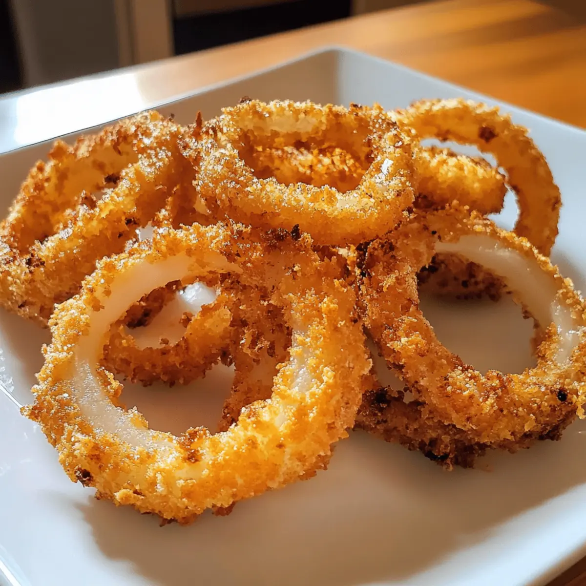 Köstliche Luftfritteuse Zwiebelringe, knusprig und gesund, ideal für Snacks oder als Beilage.