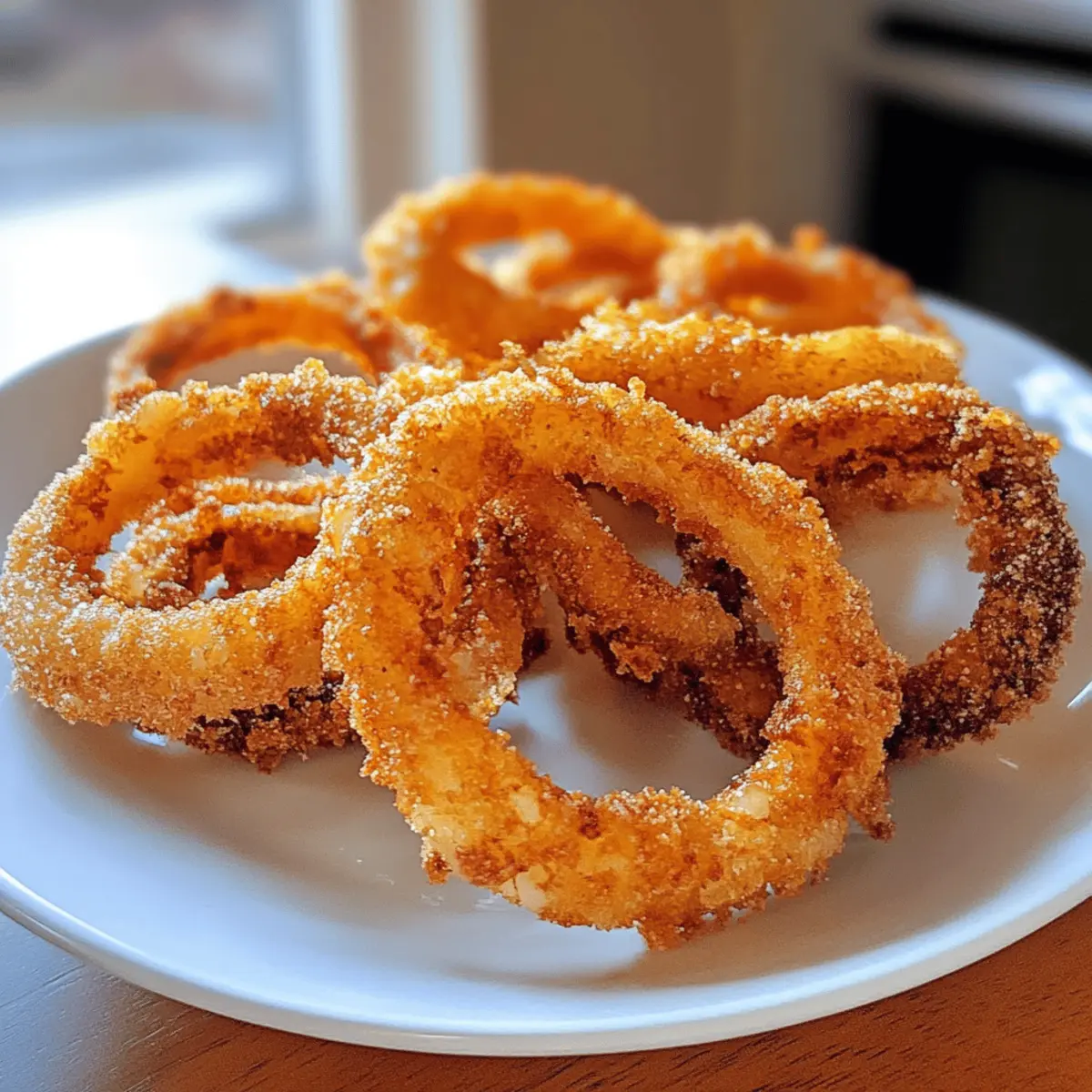 - Nehmen Sie die Zwiebelringe aus der Luftfritteuse und servieren Sie sie sofort.