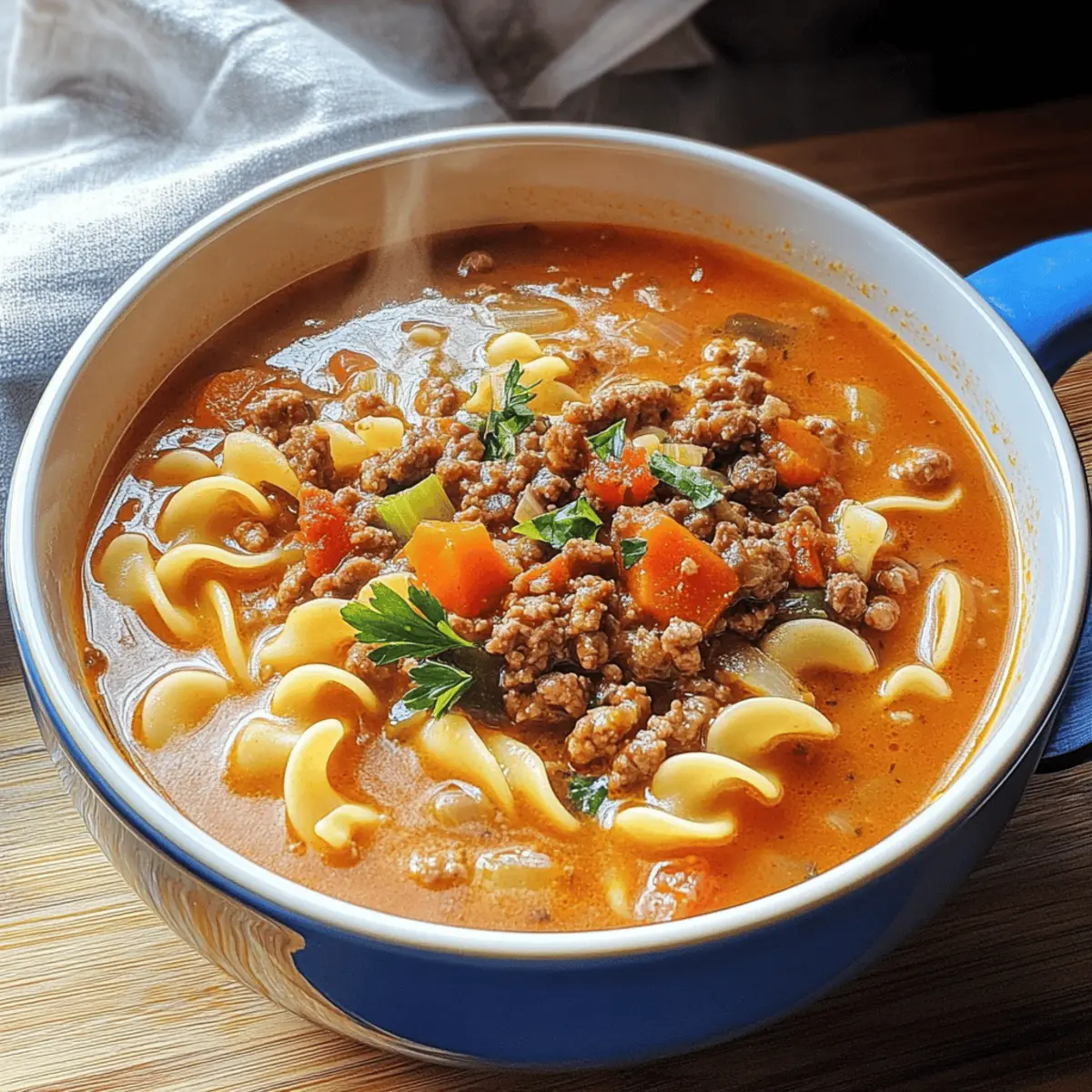 Wärmende Nudel-Hack-Suppe für kalte Tage