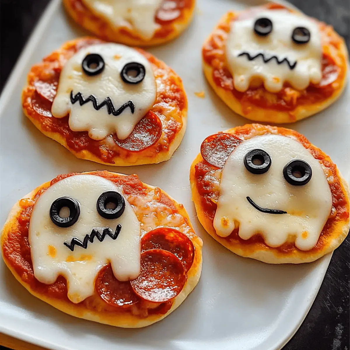 - Verwende die Oliven als Augen für die Gespenster-Pizzen.