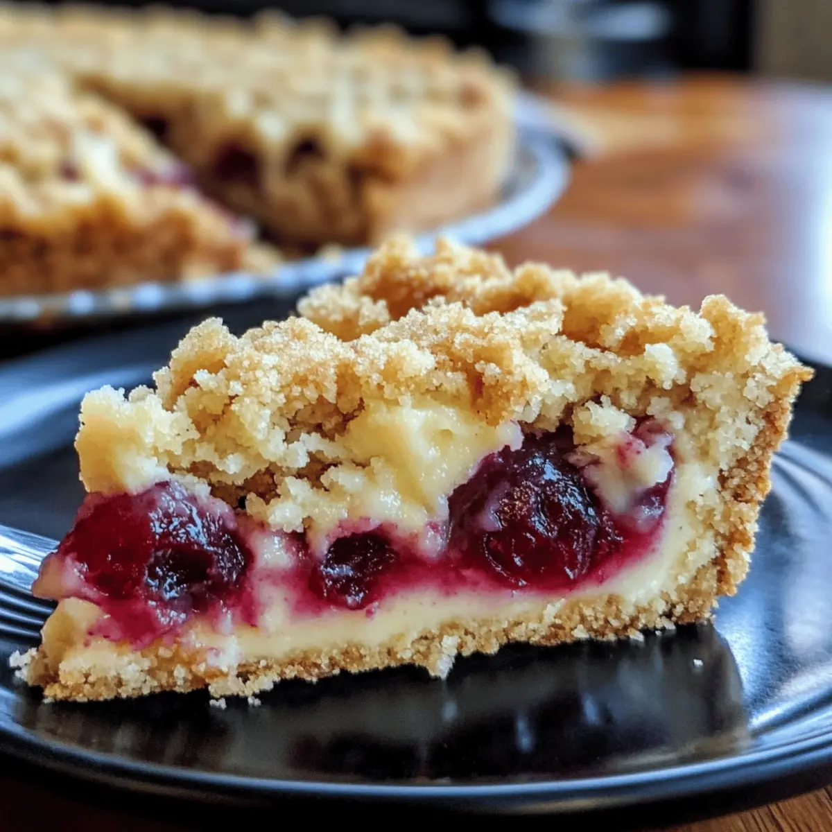 - Heize den Ofen auf 180 °C vor und stelle die Springform hinein. Backe den Kuchen für etwa 45 Minuten, bis die Streusel goldbraun sind und die Füllung blubbert.