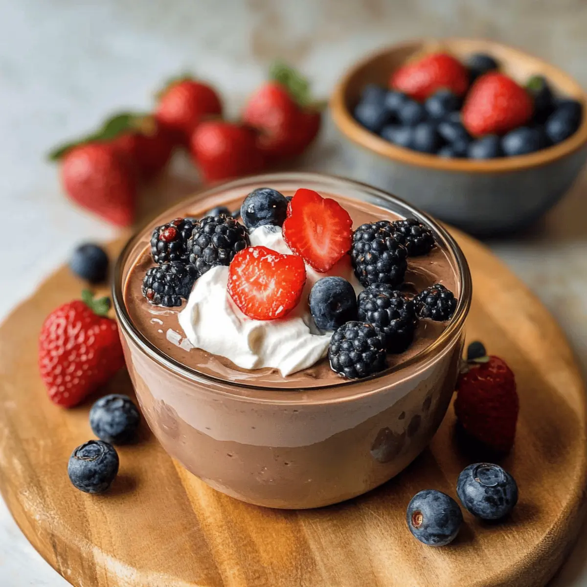 Frische Beeren: Frische Himbeeren oder Erdbeeren bringen einen fruchtigen Kontrast und sorgen für einen Vitaminkick, der den schokoladigen Geschmack wunderbar ergänzt.