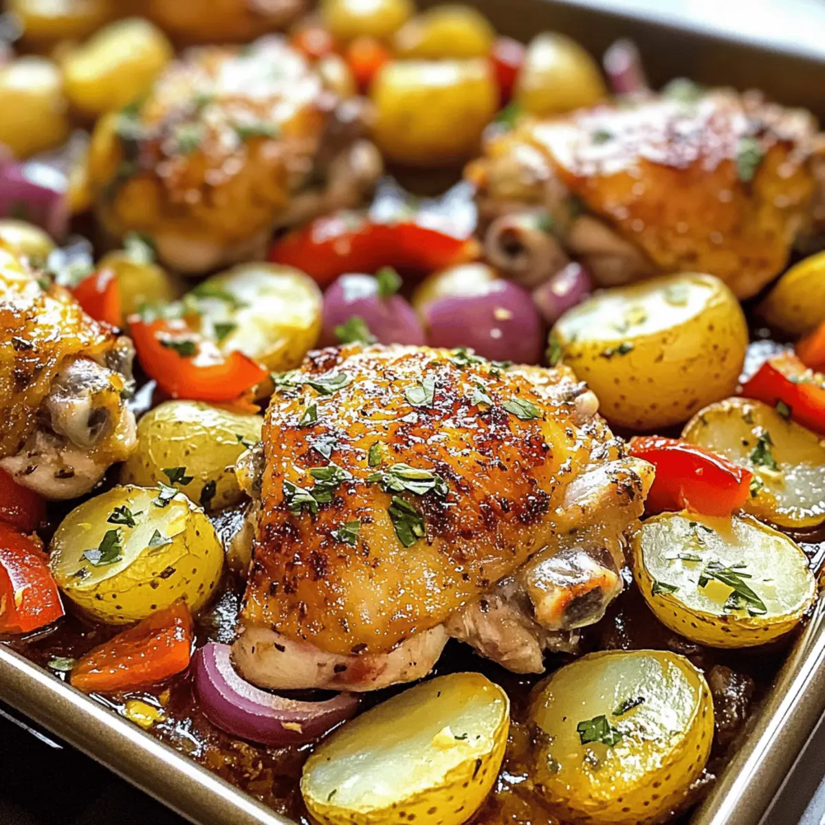 Schritt-für-Schritt-Anleitung für das Schmackhaftes Blechgericht mit griechischem Hühnchen und Kartoffeln Rezept