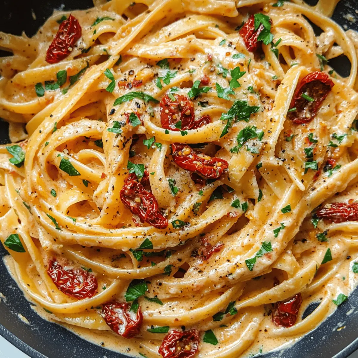 Ein köstliches Rezept für sonnendockene Tomatenpasta, das veganen Genuss bietet und einfach zuzubereiten ist.